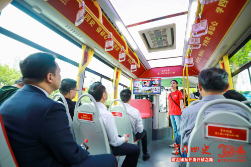不同于传统固定的“四史”学习阵地,巴士课堂是一个移动的“四史”学习平台,通过边行车、边参观、边讲课、边互动的学习形式,让“四史”学习的过程更具代入感。