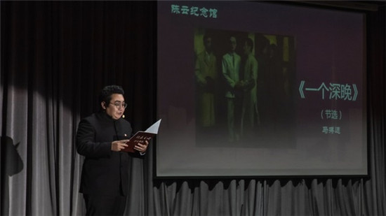陈云纪念馆讲解员马搏远诵读的《一个深晚》是鲁迅逝世一周后,陈云以“史平”为笔名在中国共产党于巴黎创刊的《救国时报》第六十四期上发表的悼念文章,回忆了第一次也是唯一一次与鲁迅见面的场景。