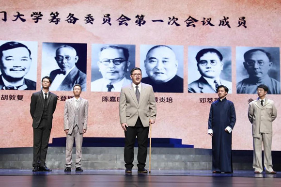 厦门大学带来朗诵情景剧《东风海上来潮畔大厦生》片段,生动再现了陈嘉庚主持筹建厦门大学第一次筹备会议的场景;并以朗诵和舞蹈的形式,带来一曲《自强向复兴》,展现了百年厦大为建设世界 大学,实现中华民族伟大复兴而踔厉前行的豪迈和信心。“在校史的学习和演绎中,更加深刻体会到一百年前,嘉庚先生倾资办学的感人事迹,更加明白作为当代大学生身上承担的使命与担当。”厦门大学学生黄泽柟说道。