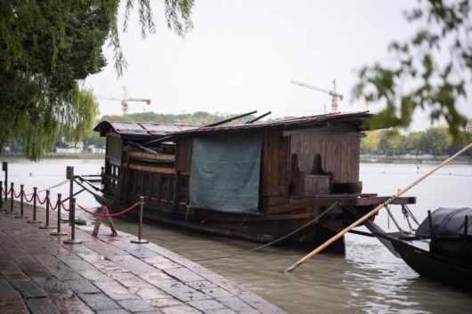 走在嘉兴南湖边,湖面波光潋滟。靠近湖心岛处,一艘复建于上世纪50年代的单夹弄中型画舫静静停泊着。