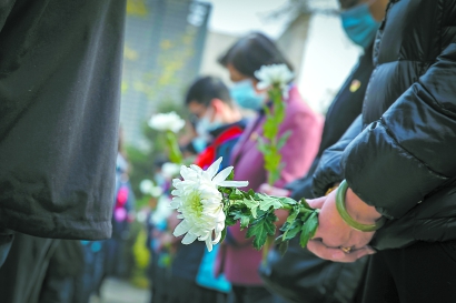 昨天上午,上海龙华烈士陵园与上海音乐学院共同举办“庚子·音祭”活动。上海音乐学院演奏团队在雕塑前为英雄们吹响号角,奏起歌曲,深切缅怀在战争中逝去的无辜死难者以及为抗战胜利献出生命的仁人志士。献花活动后,上海音乐学院献礼建党百年原创作品、交响合唱组曲《龙华魂》与歌剧《霓虹灯下的哨兵》正式启动。本次活动在“龙华英烈”官方微博同步直播。不少线上观众用留言互动的方式,寄托着对死难者的无尽哀思以及对世界和平的向往与坚守。