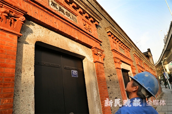据介绍,在确保文物建筑安全的基础上,修缮工作严格遵循“修旧如故”的原则,一期工程主要包括外立面清水墙风化严重部位、大门门头线脚风化及严重损坏部位补缺,局部墙面修补以及木门重新刷漆等饰面修补工作。项目施工在选材、工艺方面秉持匠心,按照传统的材料及工艺对建筑进行维护保养,完全保留建筑的历史面貌,延续建筑的耐久性和使用性。