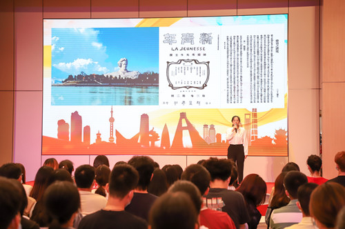 顺着这份入党誓词,他进一步向学生们诠释伟大建党精神的丰富内涵。薛峰说,百年回望初心之地,中共一大会址既是中国共产党人的精神家园,也是伟大建党精神的发源地。通过创新大学思政课程的讲述方式,将建党历史研究的最新成果融入思政课教学,带领同学们走入建党历史现场,穿越时空,融进中共一大纪念馆的红色文化氛围,与历史对话,真切感受革命人物的初心所在,能使教学内容真正融入学生的情感世界,点亮内心光明,让红色文化的精神真正融入学生的思想品格,为其铸魂立根。