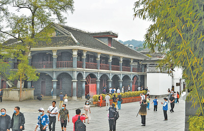 游客在贵州遵义市遵义会议会址参观。
