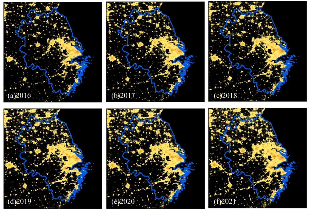 2016-2022年长三角夜间灯光遥感影像(央广网发 受访者供图)