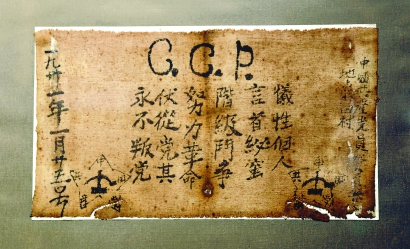 “牺牲个人,言首必蜜(严守秘密),阶级斗争,努力革命,伏(服)从党其(纪),永不叛党。”这是此次展览将展出的一份入党誓词,也是中国共产党现存的最为独特的入党誓词。它出自于江西省永新县北田村贺页朵之手,再现了这位农民党员坚定的革命信念。